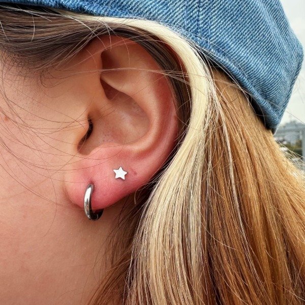 Argollas acero quirúrgico plateado de 1 cm. Son hipoalergénicas.