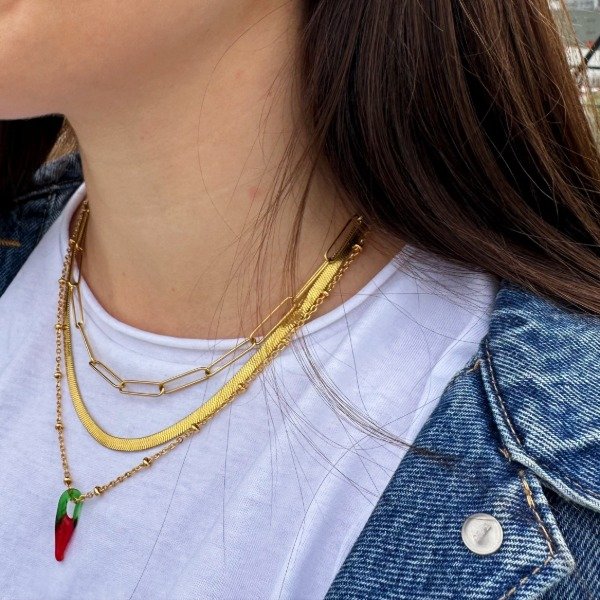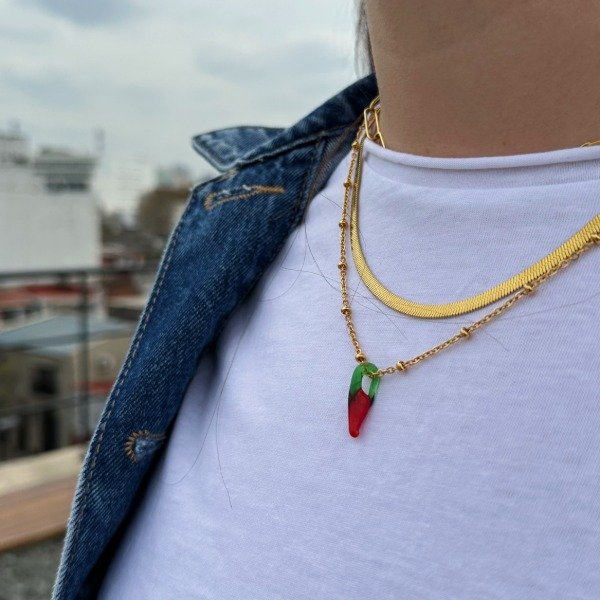Cadenita de acero quirúrgico dorado con dije de chilli ✨ Medida: 50cm